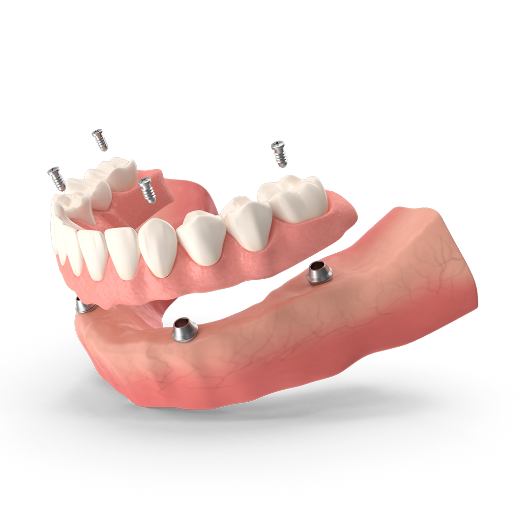 - Is custom designed to fix onto 4-6 implants per arch